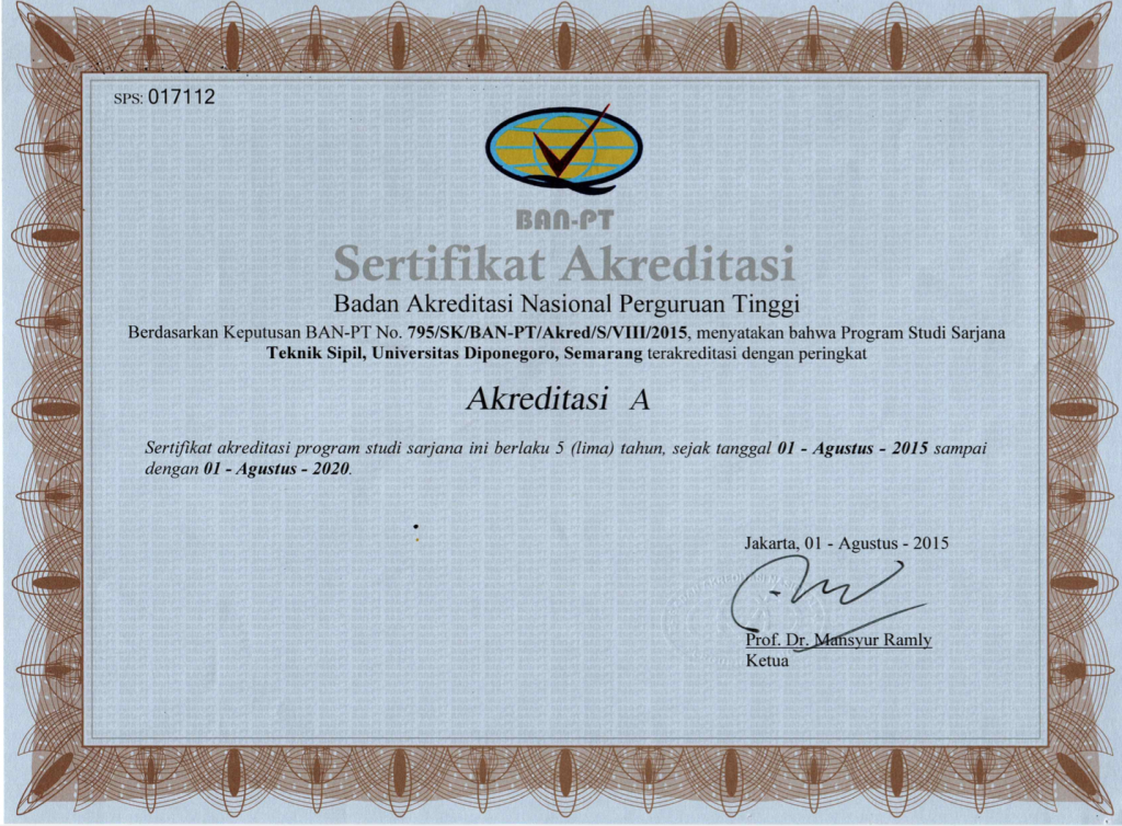 1. Akreditasi A untuk Program Studi S1 Teknik Sipil Universitas Diponegoro