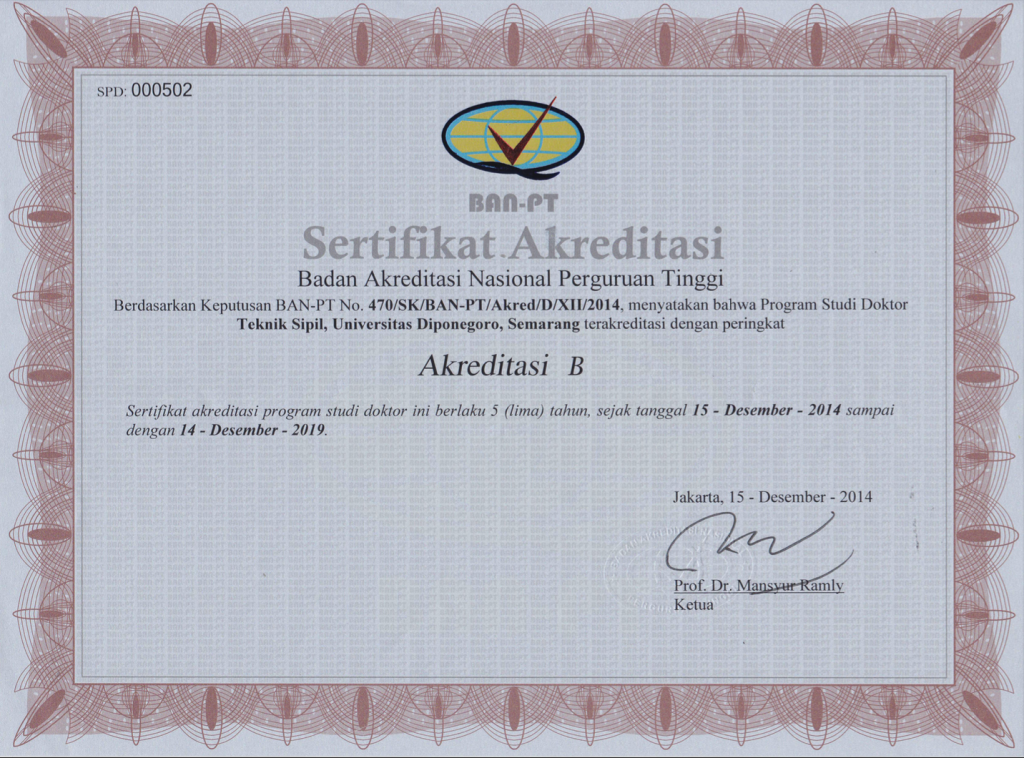 2. Akreditasi B untuk Program Studi S2 Teknik Sipil Universitas Diponegoro