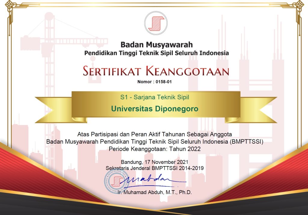 Sertifikat BMPTTSSI – Universitas Diponegoro – S1 – Sarjana Teknik Sipil