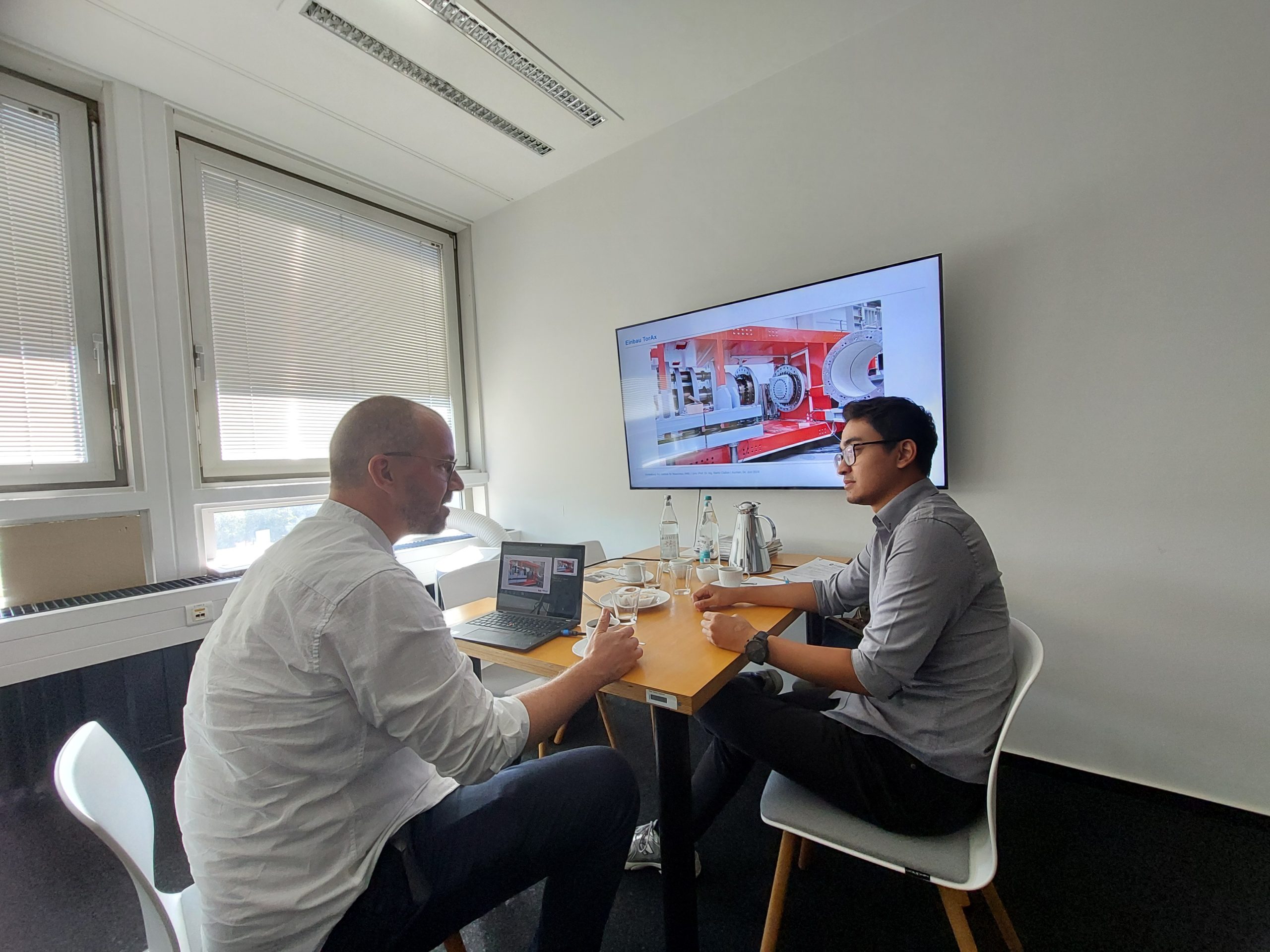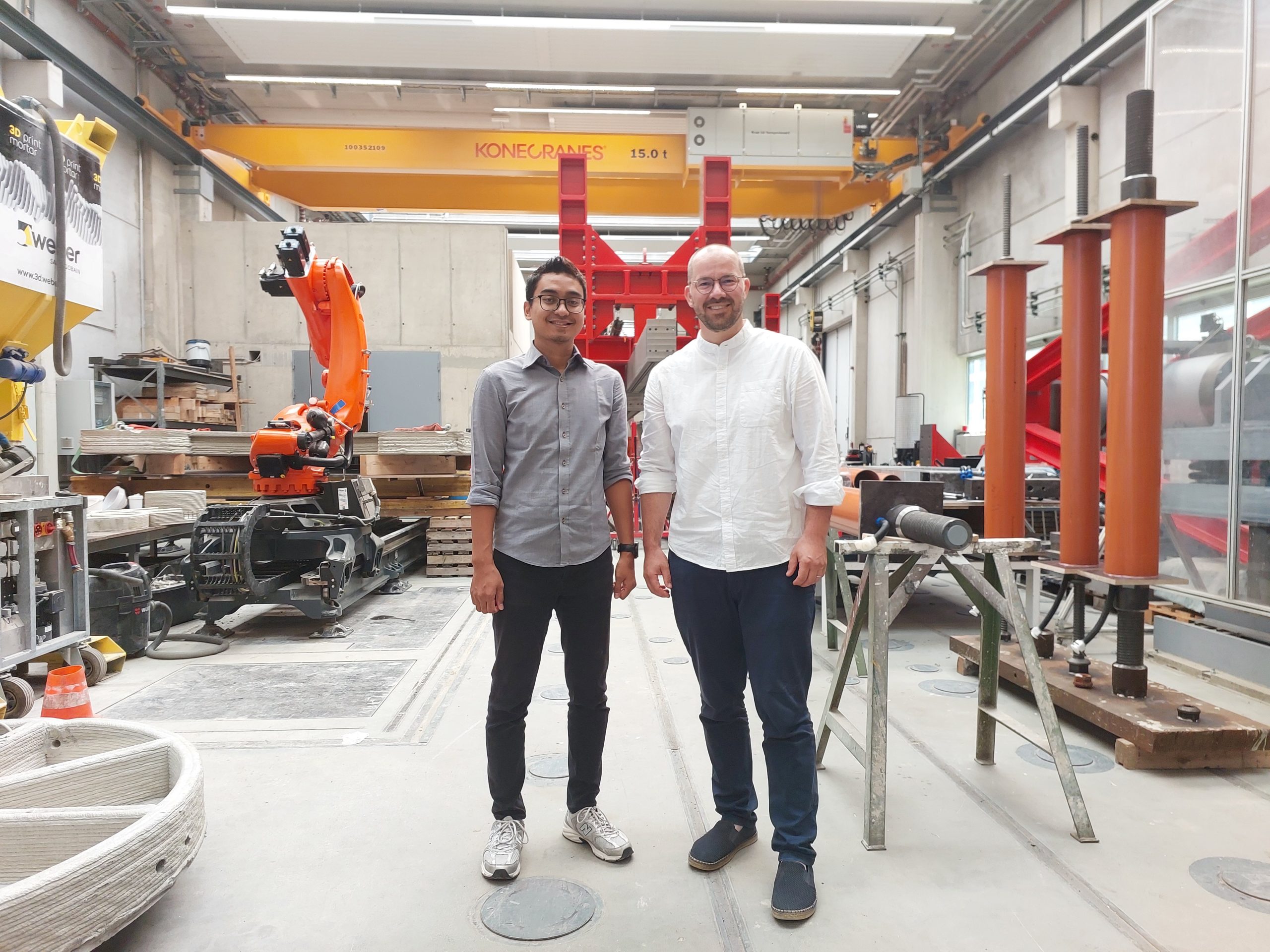 Pada kegiatan tersebut, Dr.-Ing. Bobby Rio Indriyantho melakukan pertemuan secara langsung dengan Prof. Dr.-Ing. Martin Claßen, Head of the Institute of Structural Concrete (Institut für Massivbau) di kantornya yang beralamatkan di Mies-van-der-Rohe-Str. 1, 52074 Aachen. Kunjungan kali ini ditemani oleh mahasiswa doktor di TU Dresden yang merupakan alumni S1 dan S2 Teknik Sipil UNDIP, Rydell Riko.  Fokus agenda di kampus RWTH Aachen ini adalah inisiasi joint research yang nantinya dapat pula melibatkan mahasiswa S3 untuk melakukan riset eksperimen di RWTH Aachen. Penelitian yang sedang berlangsung saat ini antara lain reinforcement and bond in textile/carbon reinforced concrete, shear and transfer mechanisms using in-house developed testing devices, new concrete mixtures (CO2reduced cement), lightweight structures, strengthening concrete on bridges and infrastructures using external prestressing, modular construction (pre-fabrication/pre-casting), dan digital fabrication (concrete 3D-printing and integration of reinforcement). Untuk menunjang berbagai riset tersebut, institut yang dikepalai oleh Prof. Claßen ini memiliki laboratorium kelas dunia dengan peralatan canggihnya dan beliau mengajak berkeliling mengunjungi laboratorium-laboratorium tersebut.